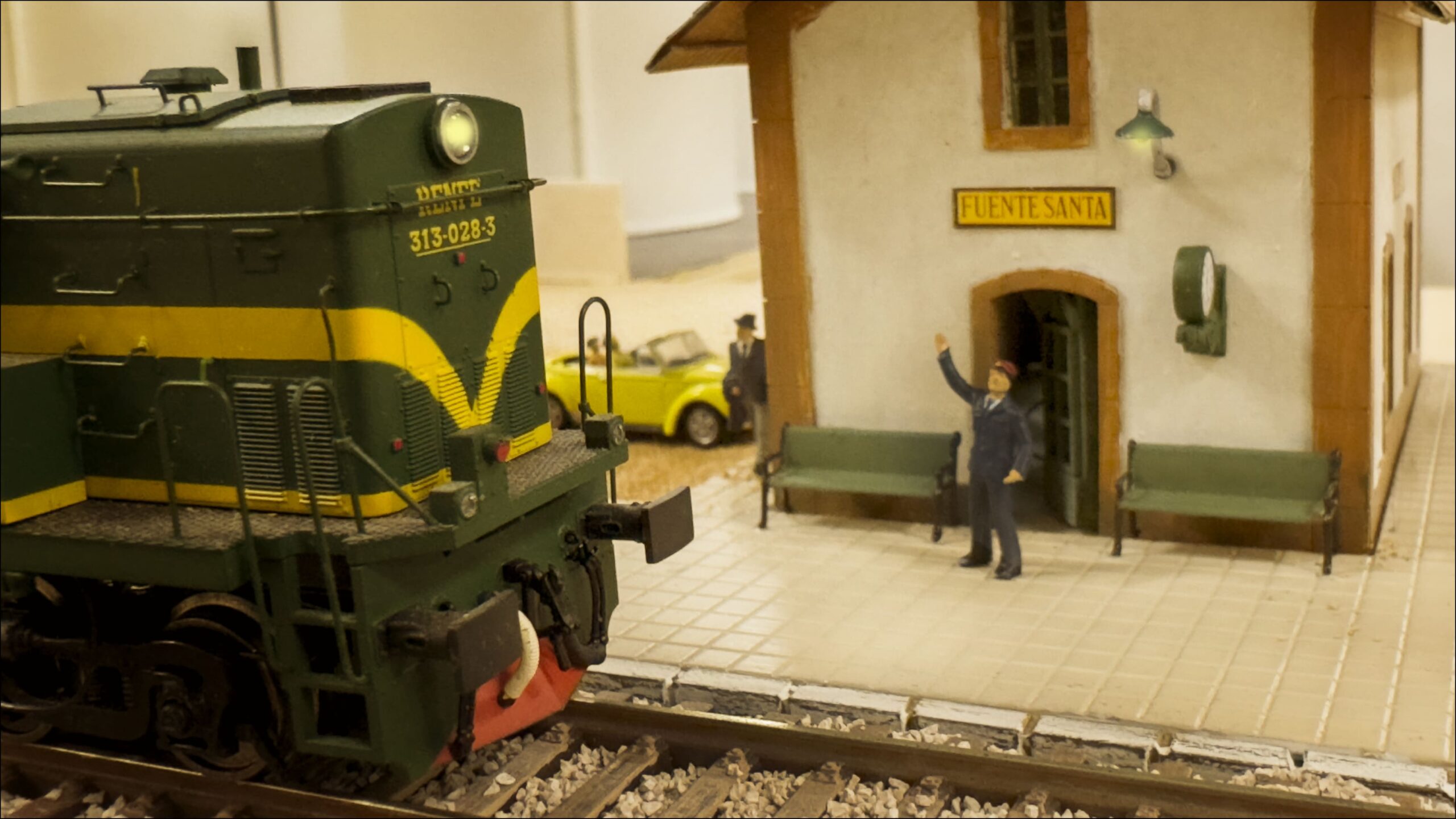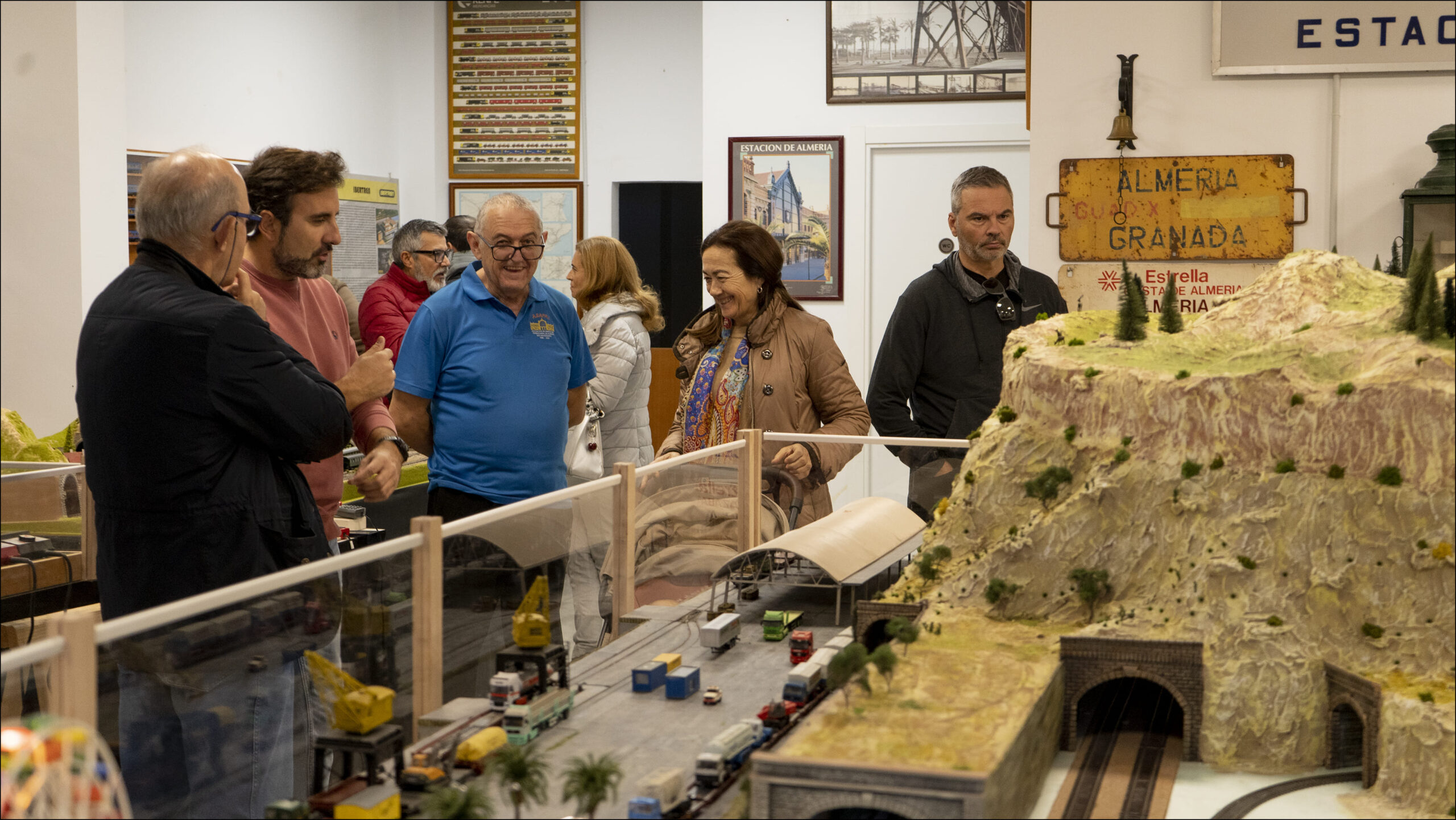 Este año hemos presentado grandes novedades respecto a la anterior edición: la gran maqueta digital a escala H0 de 37 m2 ha ampliado el número de trenes circulando al mismo tiempo por cuatro itinerarios diferentes con una detallada ambientación de distintos escenarios ferroviarios almerienses muy reconocibles, como las áridas montañas con túneles y puentes, el puerto de Almería y el embarque de los barriles de uva o la feria; la descarga de los trenes de mineral y otros rincones y personajes para que el visitante los vaya descubriendo. Además, se han incorporado nuevas piezas reales a la colección expuesta, donde destaca el poste telefónico que permite hablar con el gabinete de circulación a través de un teléfono de campaña. Tampoco ha faltado la exhibición de documentación histórica de gran valor de nuestro archivo y, para los más pequeños, un circuito y un tren formado con piezas del tipo Lego que pudieron manejar mediante un mando a distancia.