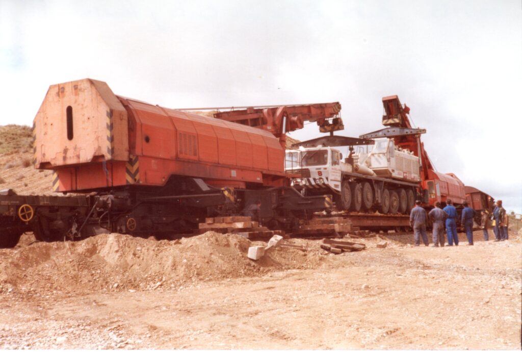 Este peculiar material ferroviario siempre ha estado presente en caso de una avería o un descarrilamiento para realizar las labores de liberación de la vía que, en algunos casos, tenían que efectuarse en tramos complicados y en condiciones poco favorables. Las antiguas compañías ferroviarias, como Norte o MZA, contaban con grúas de diferente potencia que posteriormente pasaron a la empresa estatal RENFE cuando fue creada en 1941. A lo largo de los años se fueron incorporando nuevos modelos de grúas mucho más potentes, entre 70 y 100 toneladas, hasta llegar a las de brazo telescópico con un peso de 100 y 120 toneladas que fueron fabricadas en la extinta República Democrática Alemana en la década de los años 80. Esas últimas corresponden al modelo Takraf y una de ellas estuvo destinada en el taller de mantenimiento de Almería hasta finales del siglo XX.