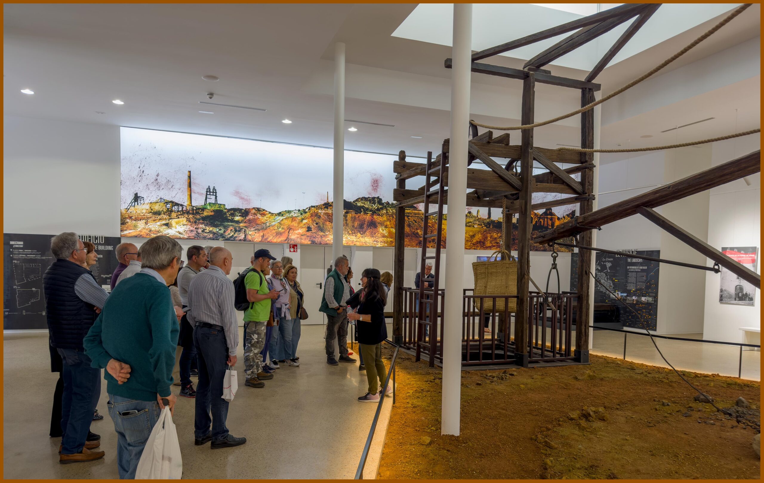 El recorrido estuvo a cargo de una excelente guía del museo que fue explicando de una manera muy didáctica los diferentes aspectos de la historia minera de la sierra de Cartagena-La Unión a través de las dos grandes salas en las que se estructuran los cinco ámbitos (Línea del tiempo, la mina, geología, sociedad y minería a cielo abierto) y donde se muestran más de 300 objetos vinculados a la actividad minero-metalúrgica de los siglos XIX y XX y una gran colección de minerales.